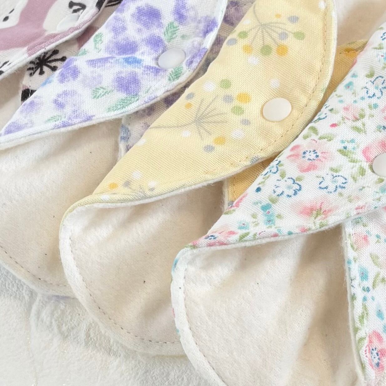 お肌に優しく、安心安全な無添加・無漂白の生地を使用した4枚セットとなります❁