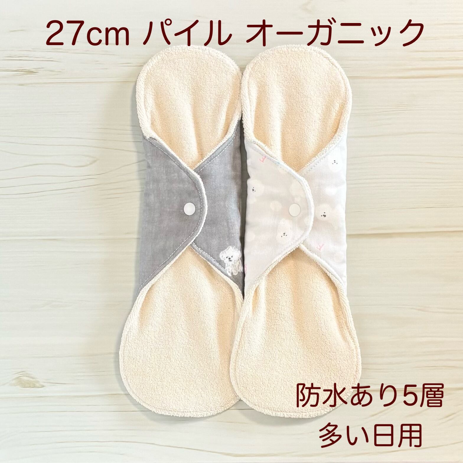 27cm パイル オーガニック 布ナプキン 防水仕様 2枚セット 344