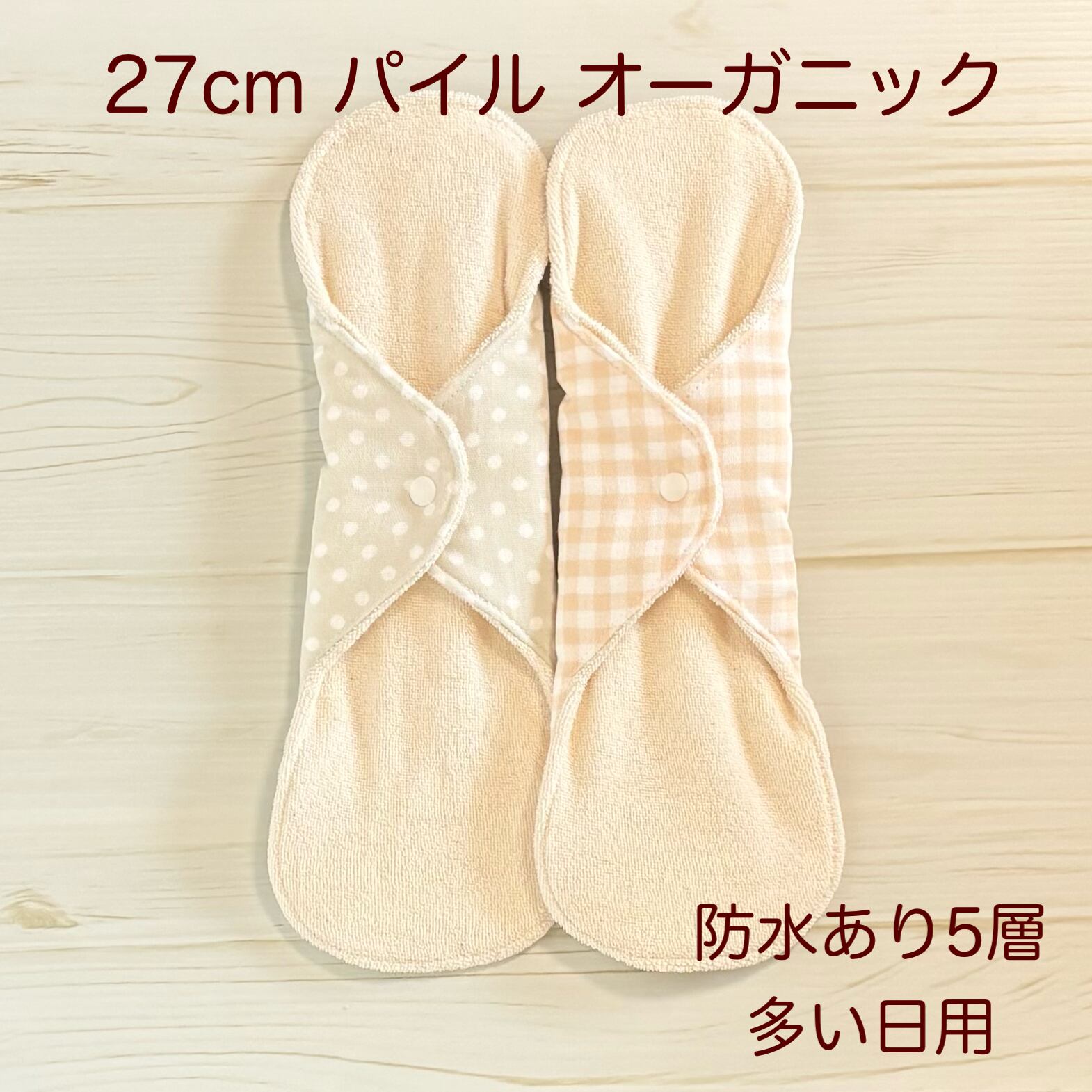 27cm パイル オーガニック 布ナプキン 防水仕様 2枚セット 345