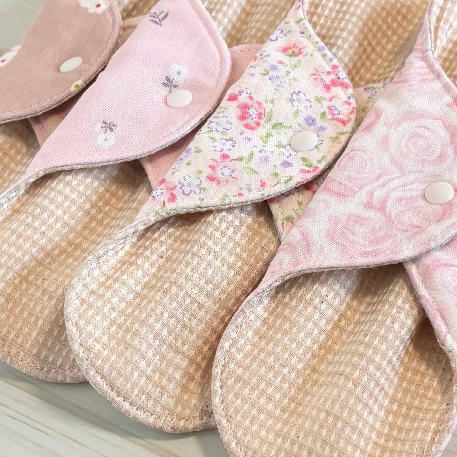 お肌に優しく、安心安全なオーガニック生地を使用した布ナプキン4枚セットとなります❁