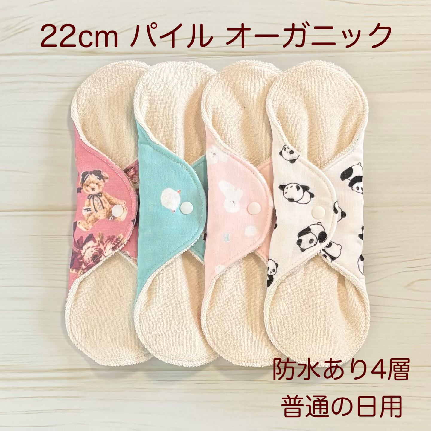 • 22cm パイル オーガニック 布ナプキン 防水仕様 4枚セット 普通の日用 377