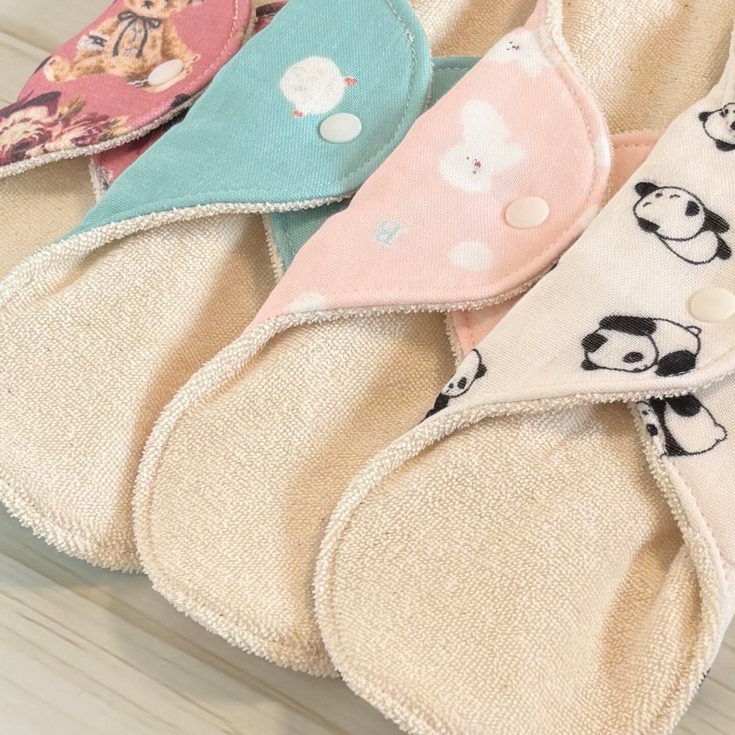 裏布には全てダブルガーゼ生地を使用し、あたたかみのある布ナプキンに仕上げました。