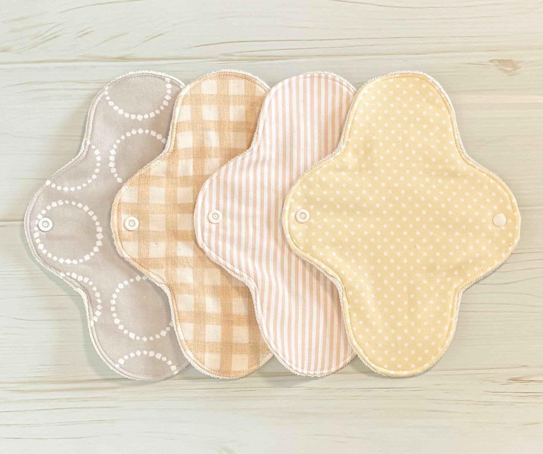 お肌に優しく、安心安全なオーガニック生地を使用した布ナプキン4枚セットとなります❁