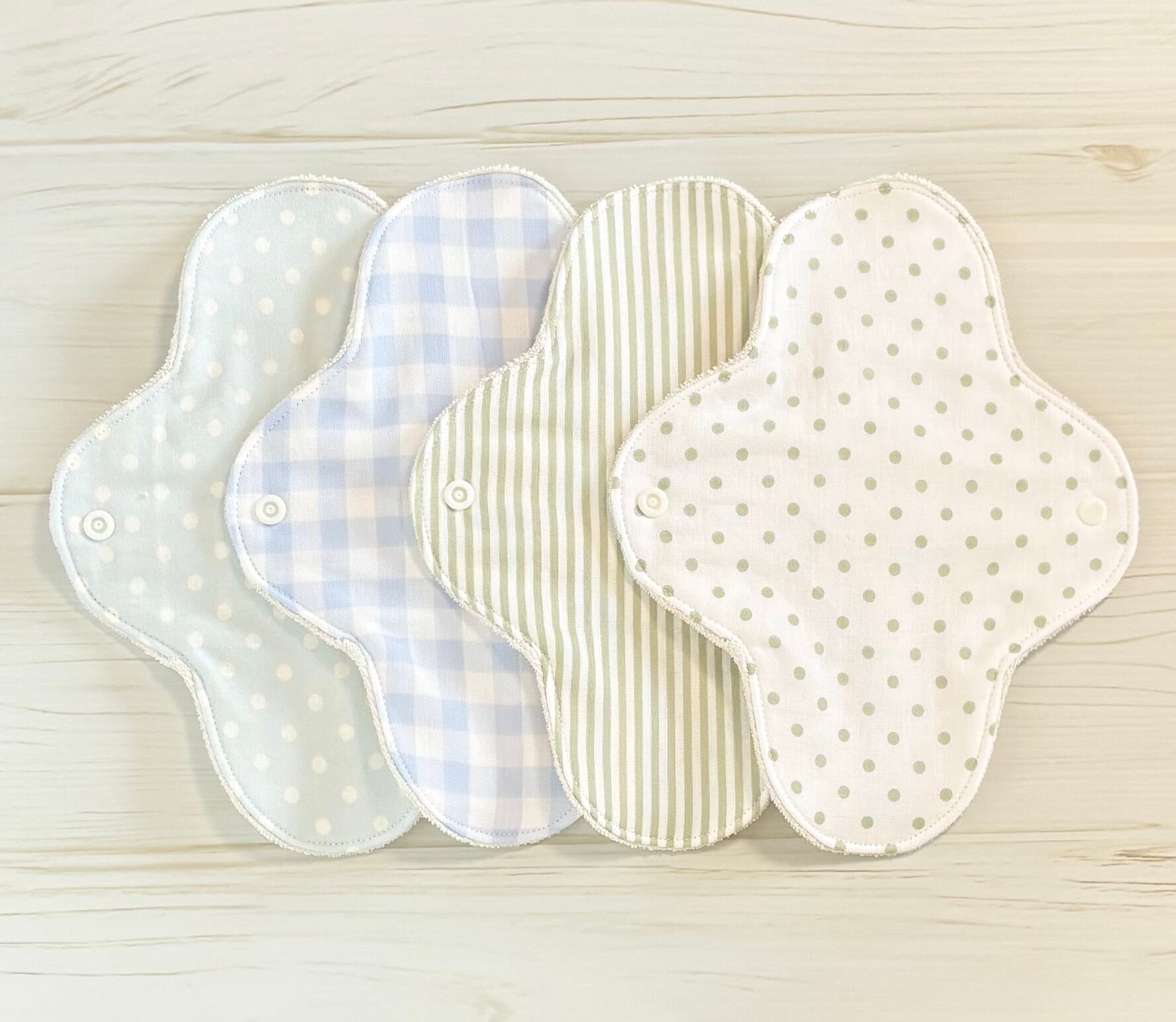お肌に優しく、安心安全なオーガニック生地を使用した布ナプキン4枚セットとなります❁