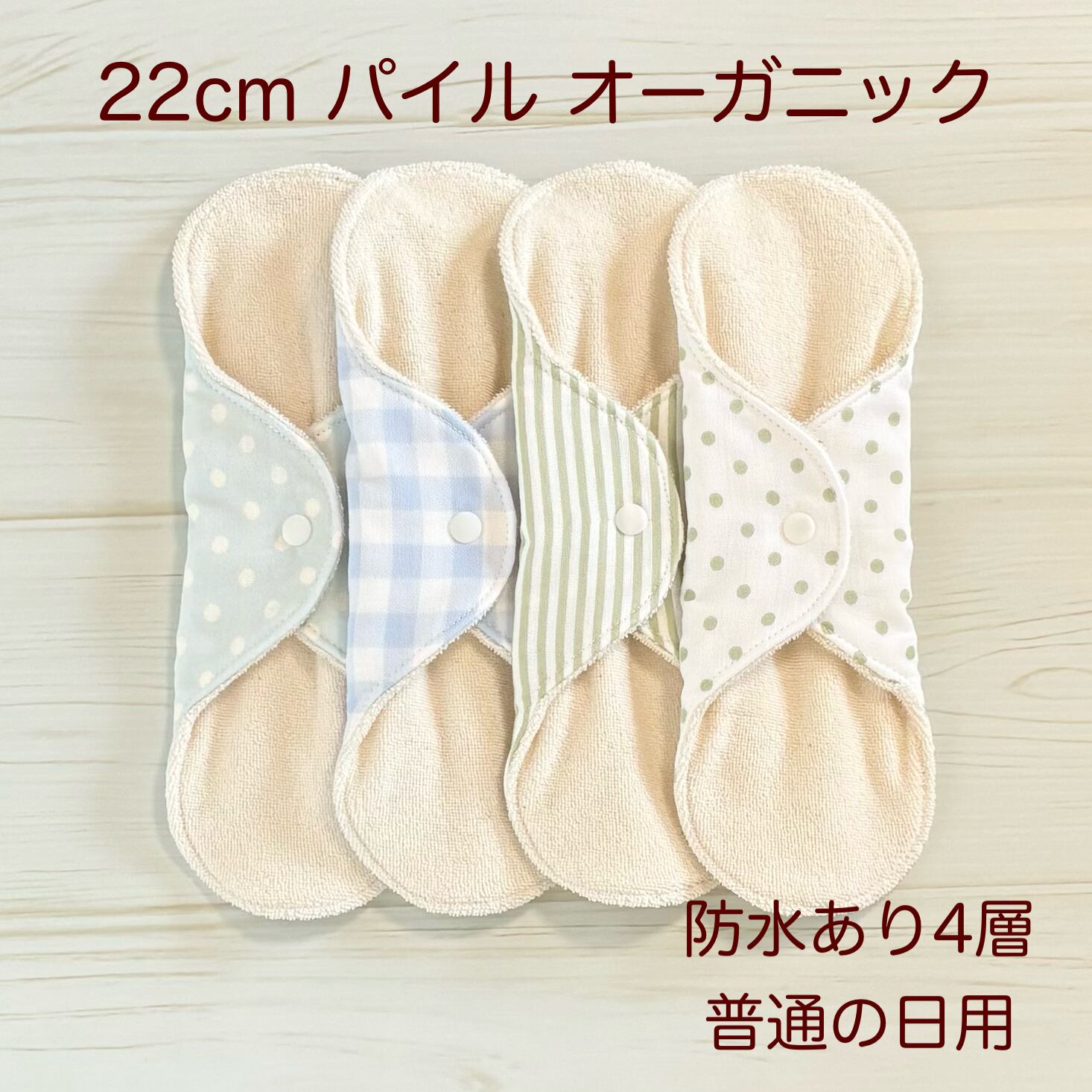 • 22cm パイル オーガニック 布ナプキン 防水仕様 4枚セット 普通の日用 379