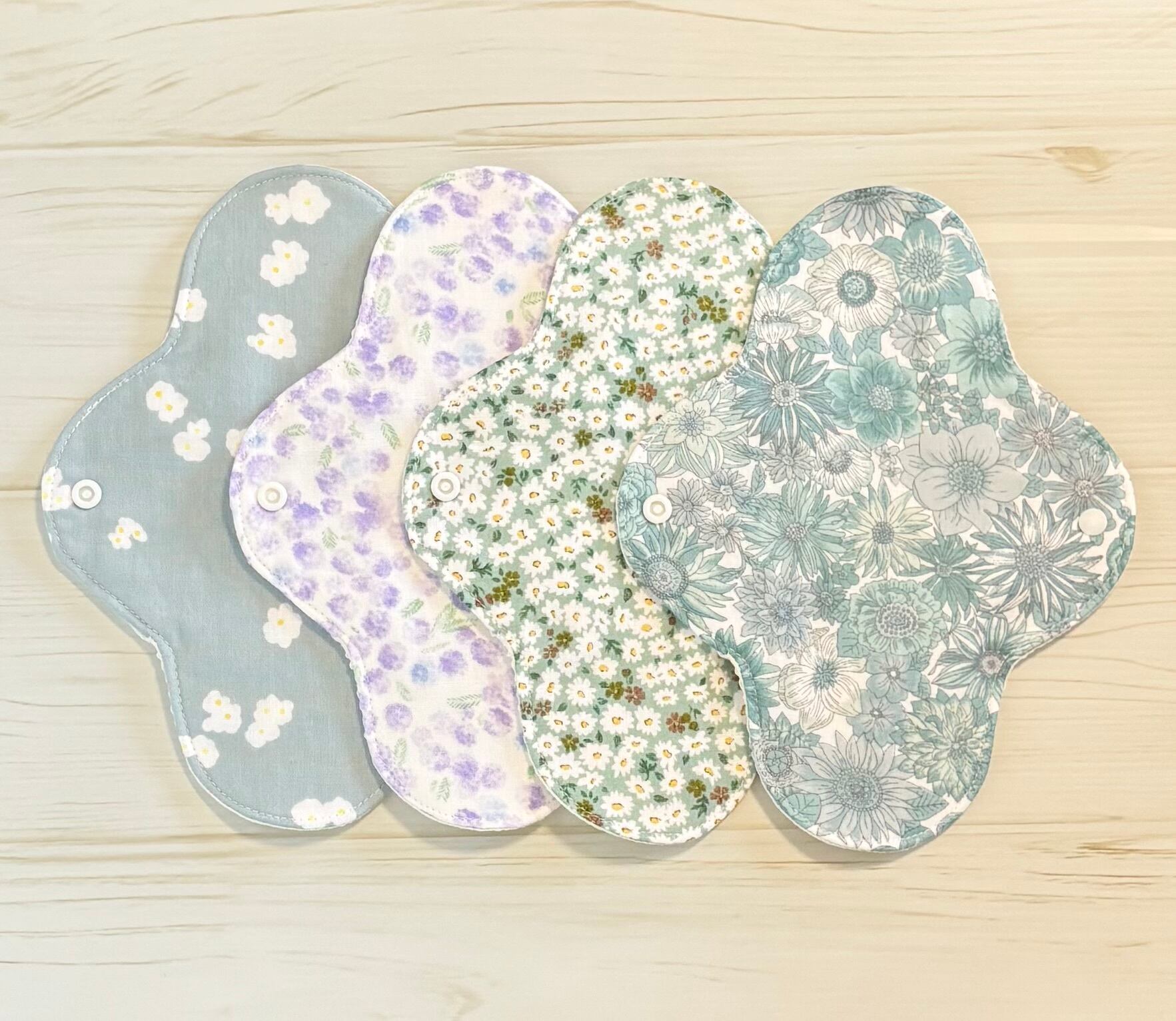 お肌に優しく、安心安全なオーガニック生地を使用した布ナプキン4枚セットとなります❁