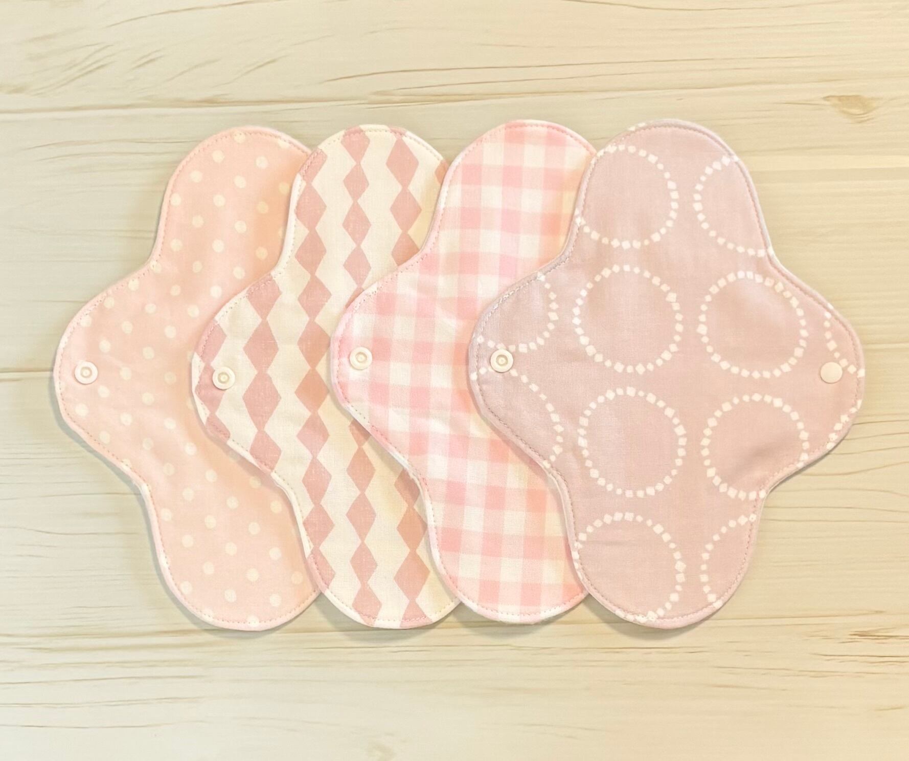 お肌に優しく、安心安全な無添加・無漂白の生地を使用した布ナプキン4枚セットとなります❁