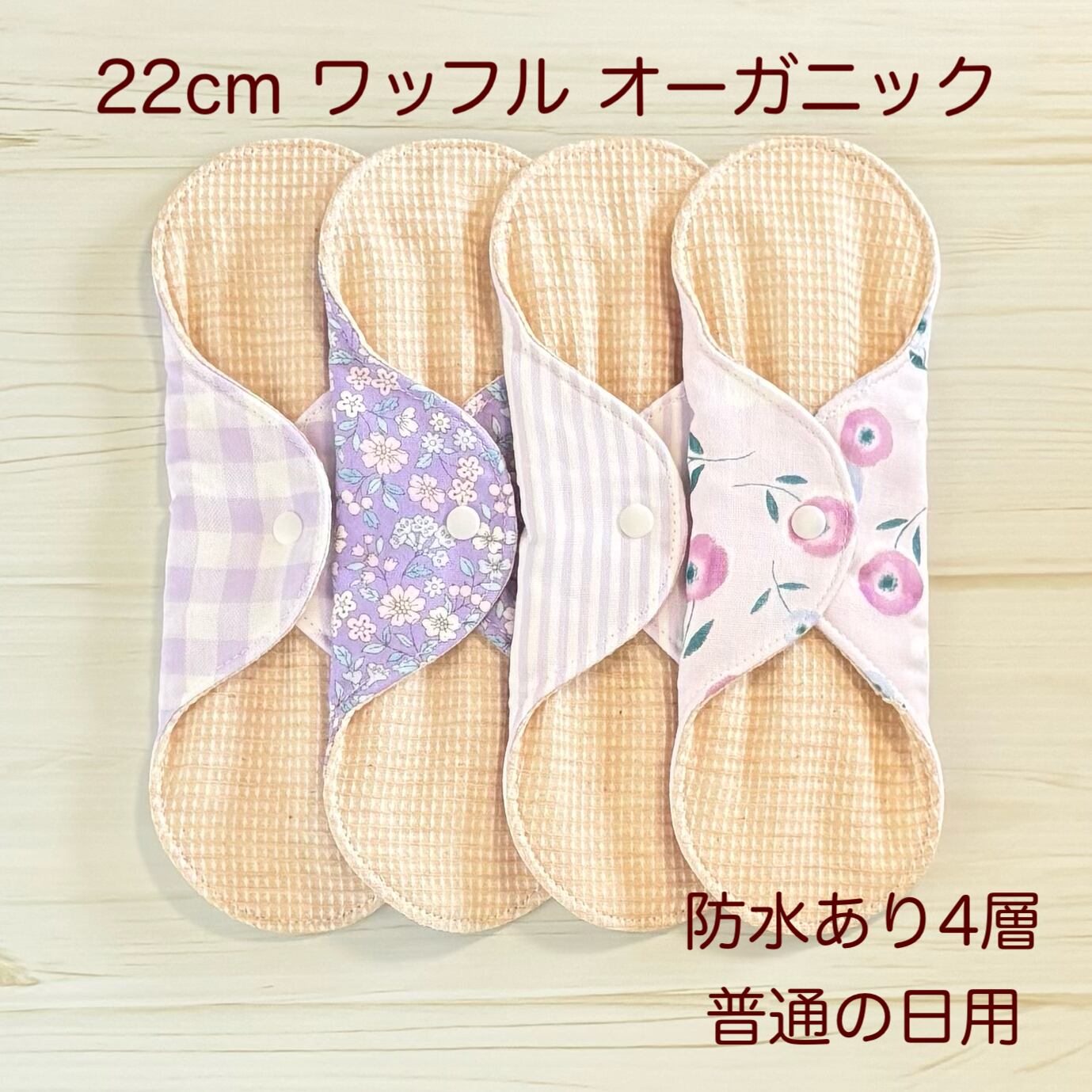 • 22cm ワッフル オーガニック 布ナプキン 防水仕様 4枚セット 普通の日用 418