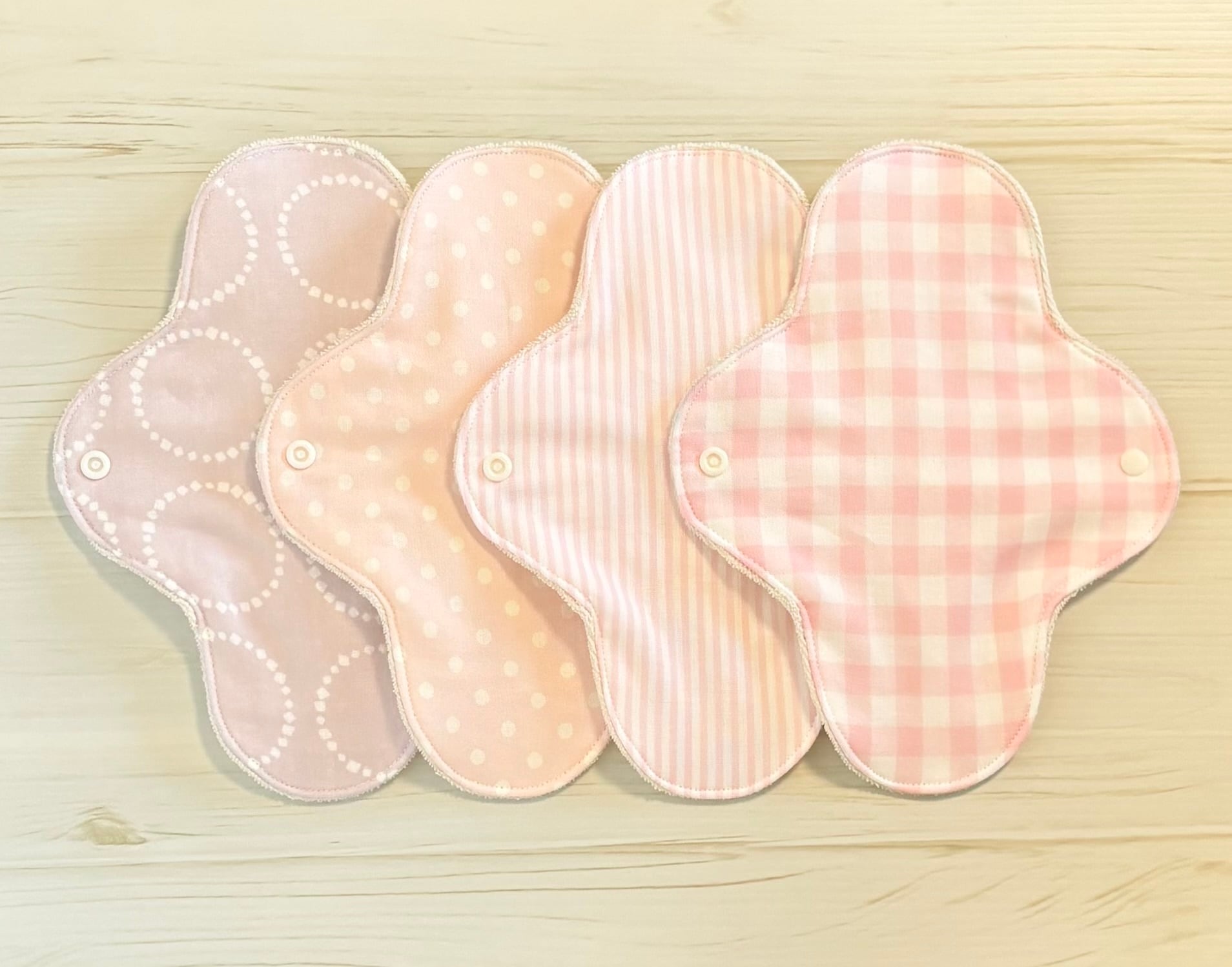 お肌に優しく、安心安全なオーガニック生地を使用した布ナプキン4枚セットとなります❁