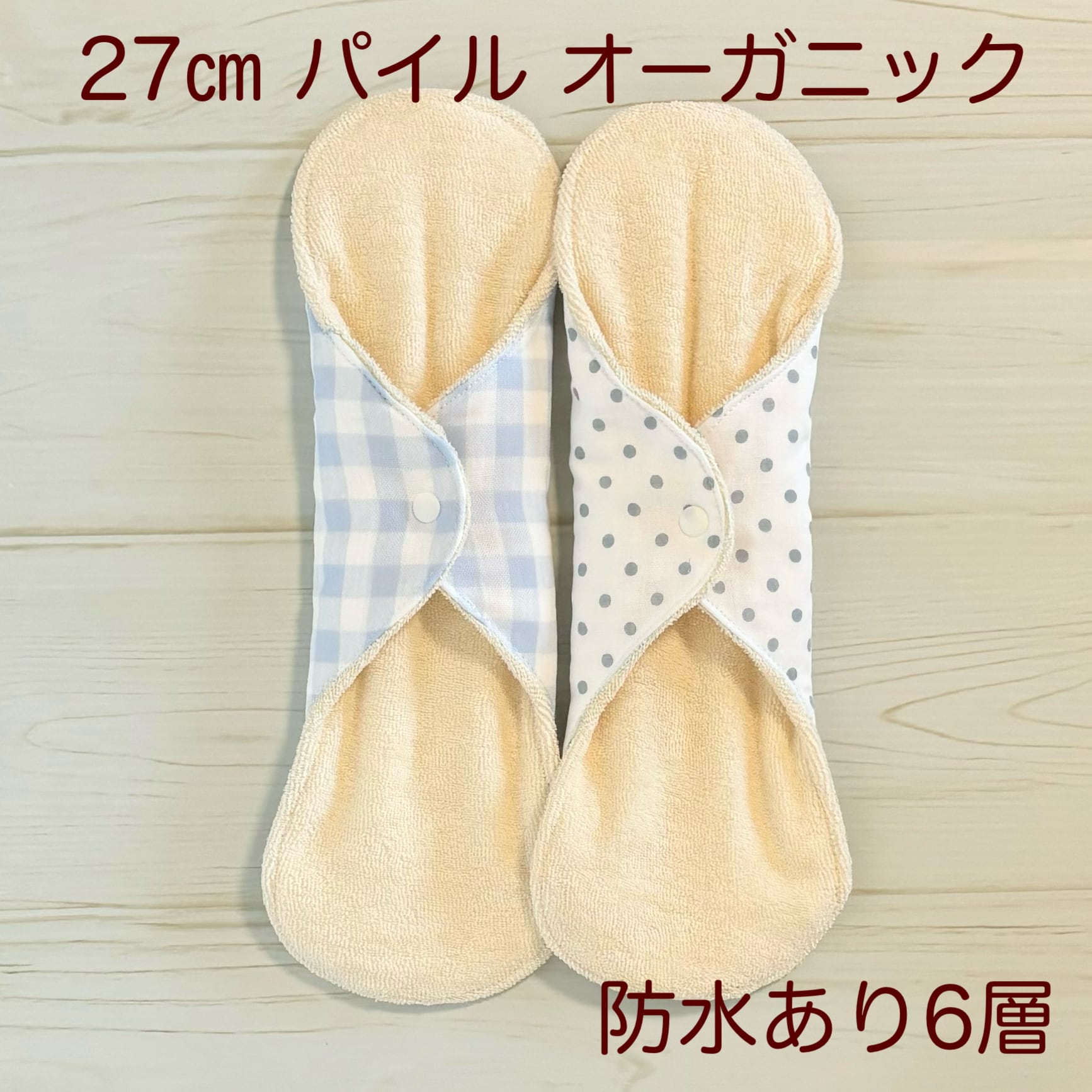 27cm パイル オーガニック 布ナプキン 防水仕様 2枚セット 127