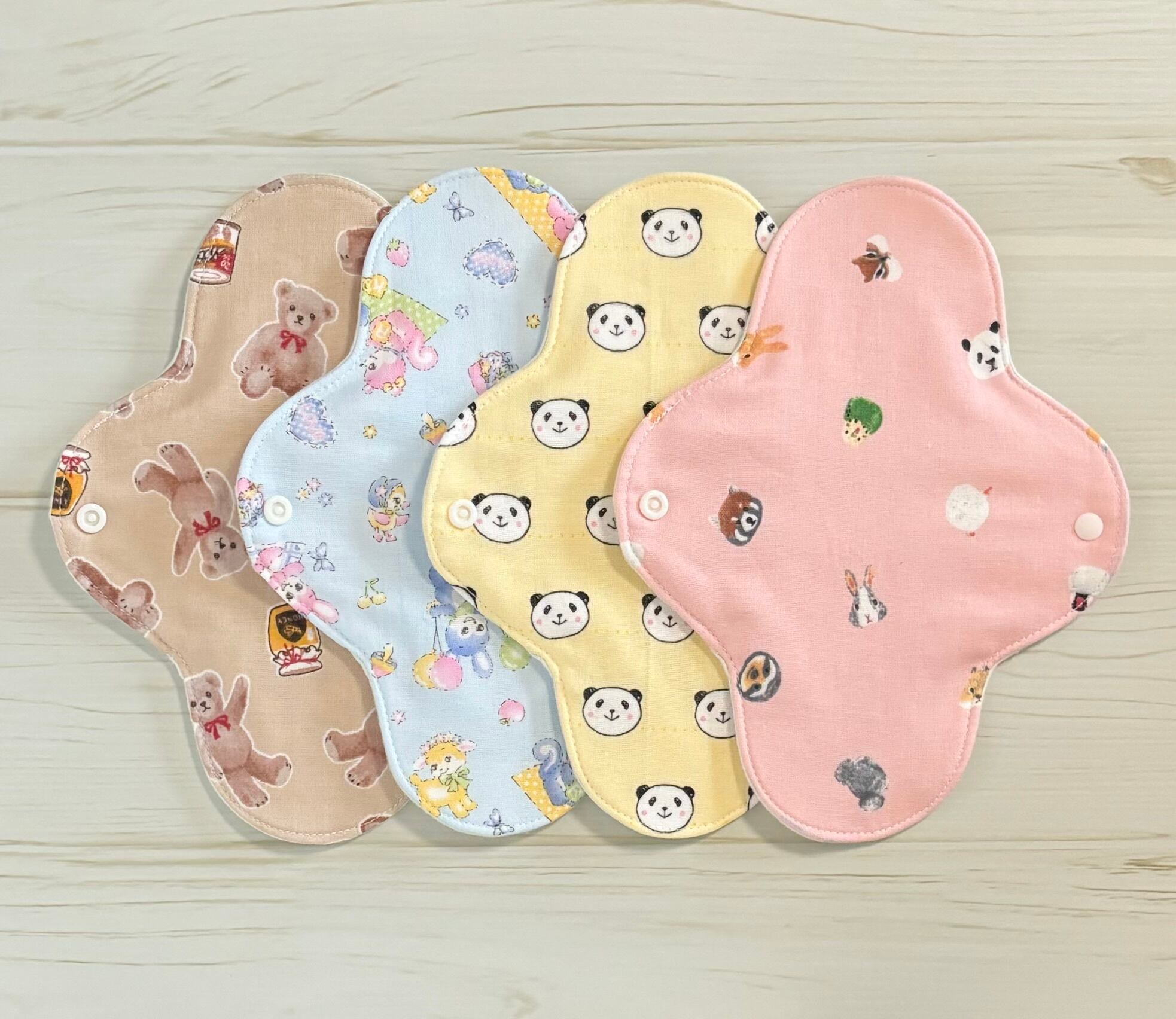 お肌に優しく、安心安全な無添加・無漂白の生地を使用した布ナプキン4枚セットとなります❁