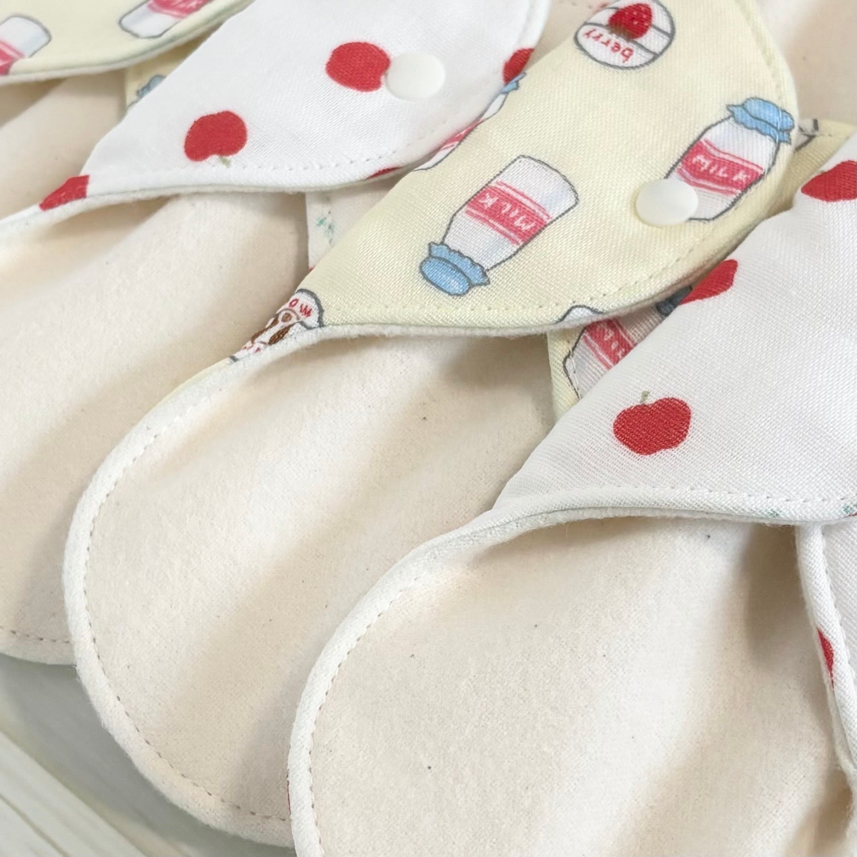 裏布には全てダブルガーゼ生地を使用し、あたたかみのある布ナプキンに仕上げました。