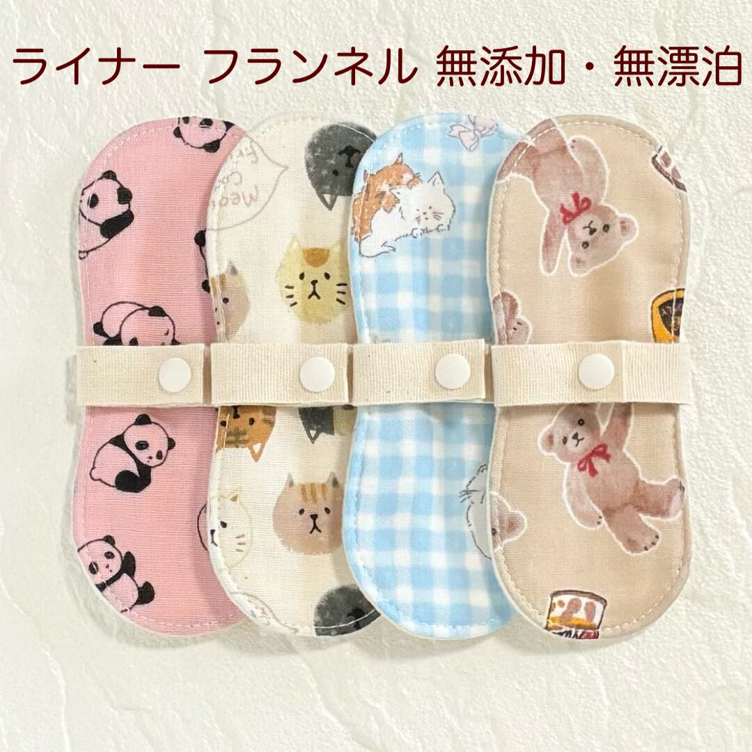 お肌に優しく、安心安全な無添加・無漂白の生地を使用した布ライナー4枚セットとなります❁