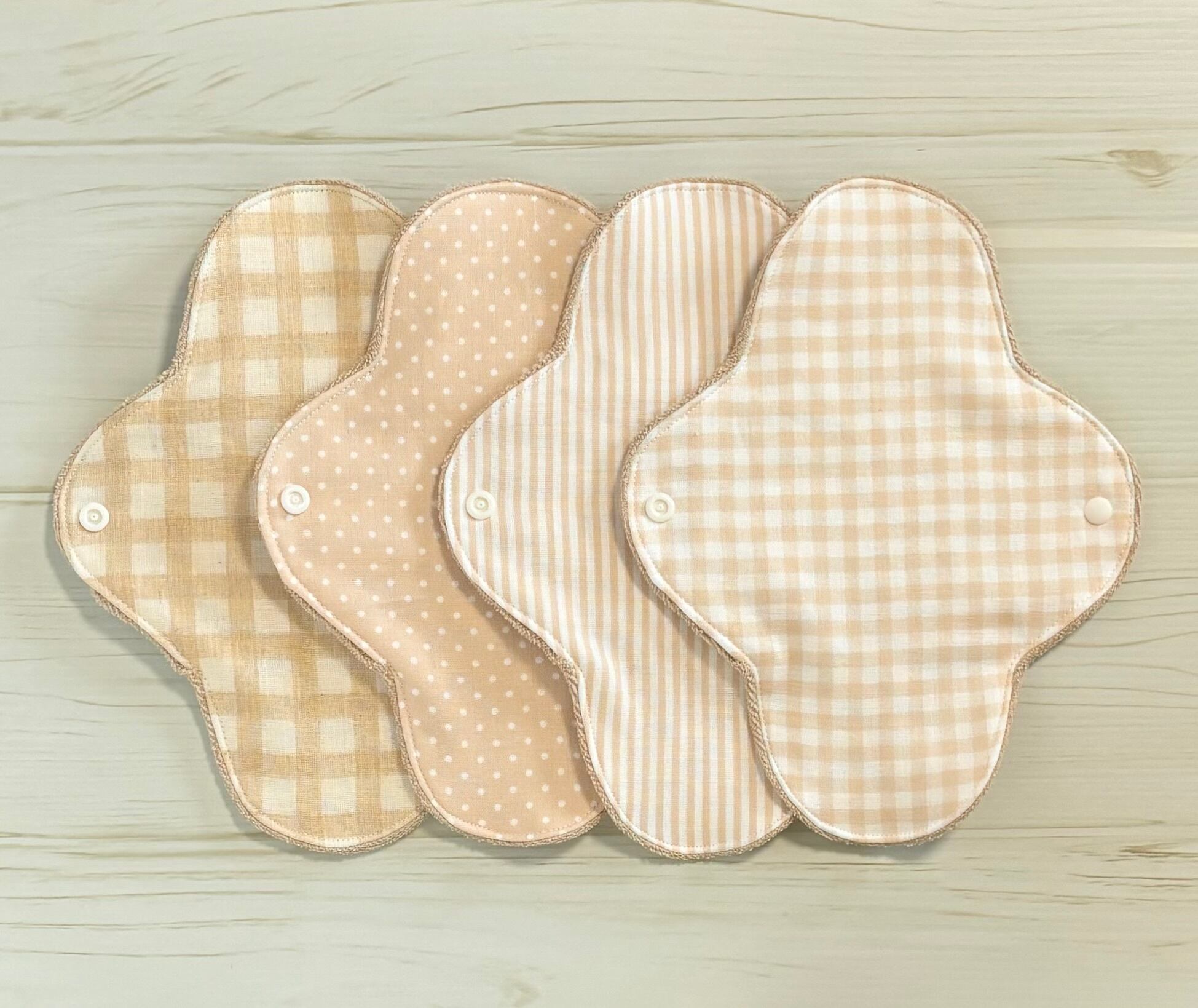 お肌に優しく、安心安全なオーガニック生地を使用した布ナプキン4枚セットとなります❁