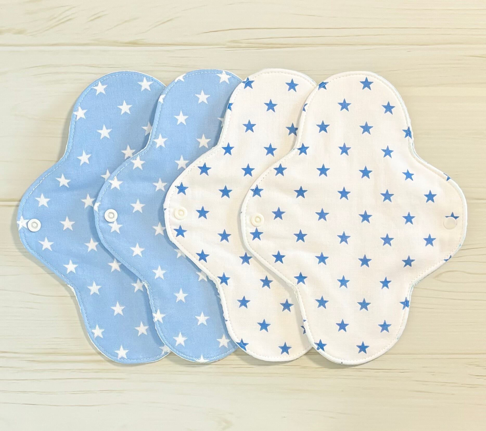 お肌に優しく、安心安全なオーガニック生地を使用した布ナプキン4枚セットとなります❁