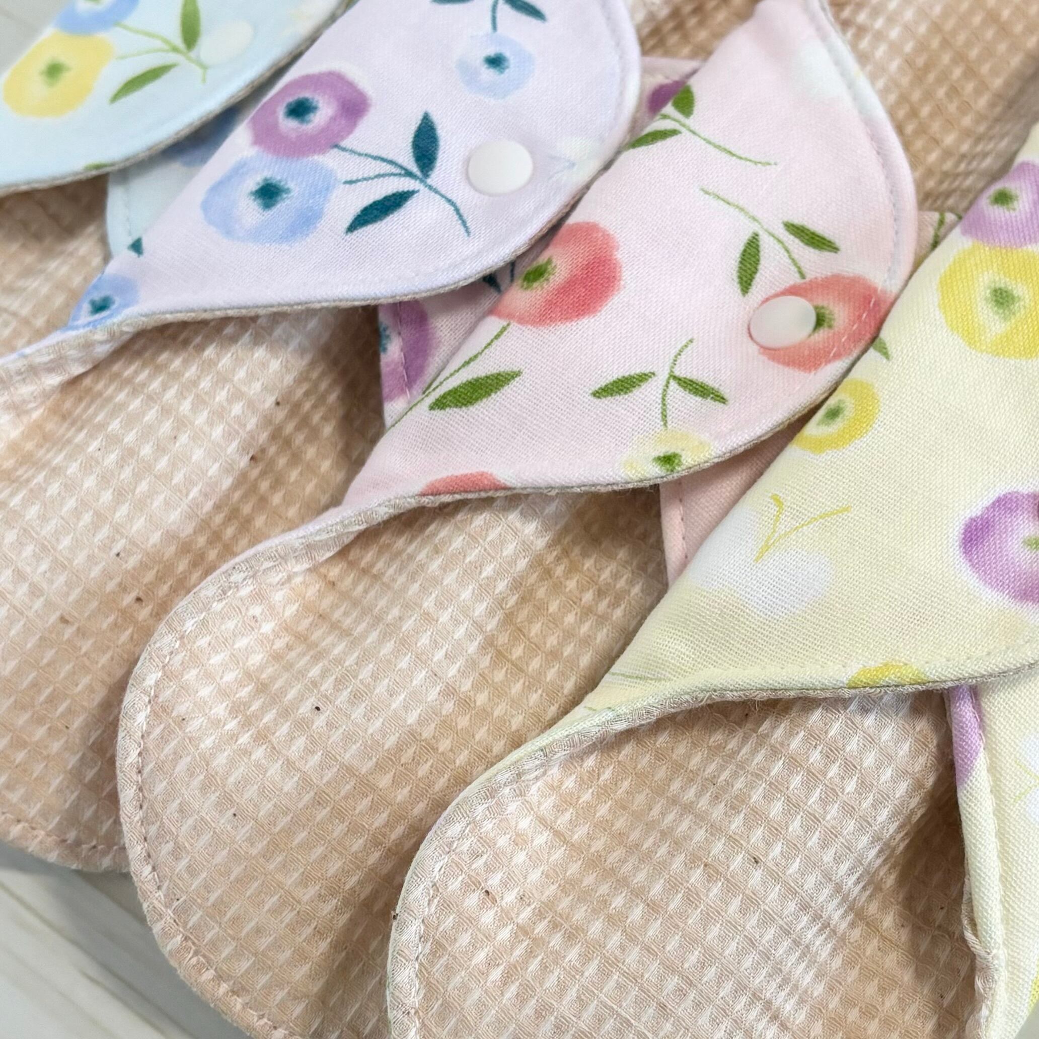 お肌に優しく、安心安全なオーガニック生地を使用した布ナプキン4枚セットとなります❁