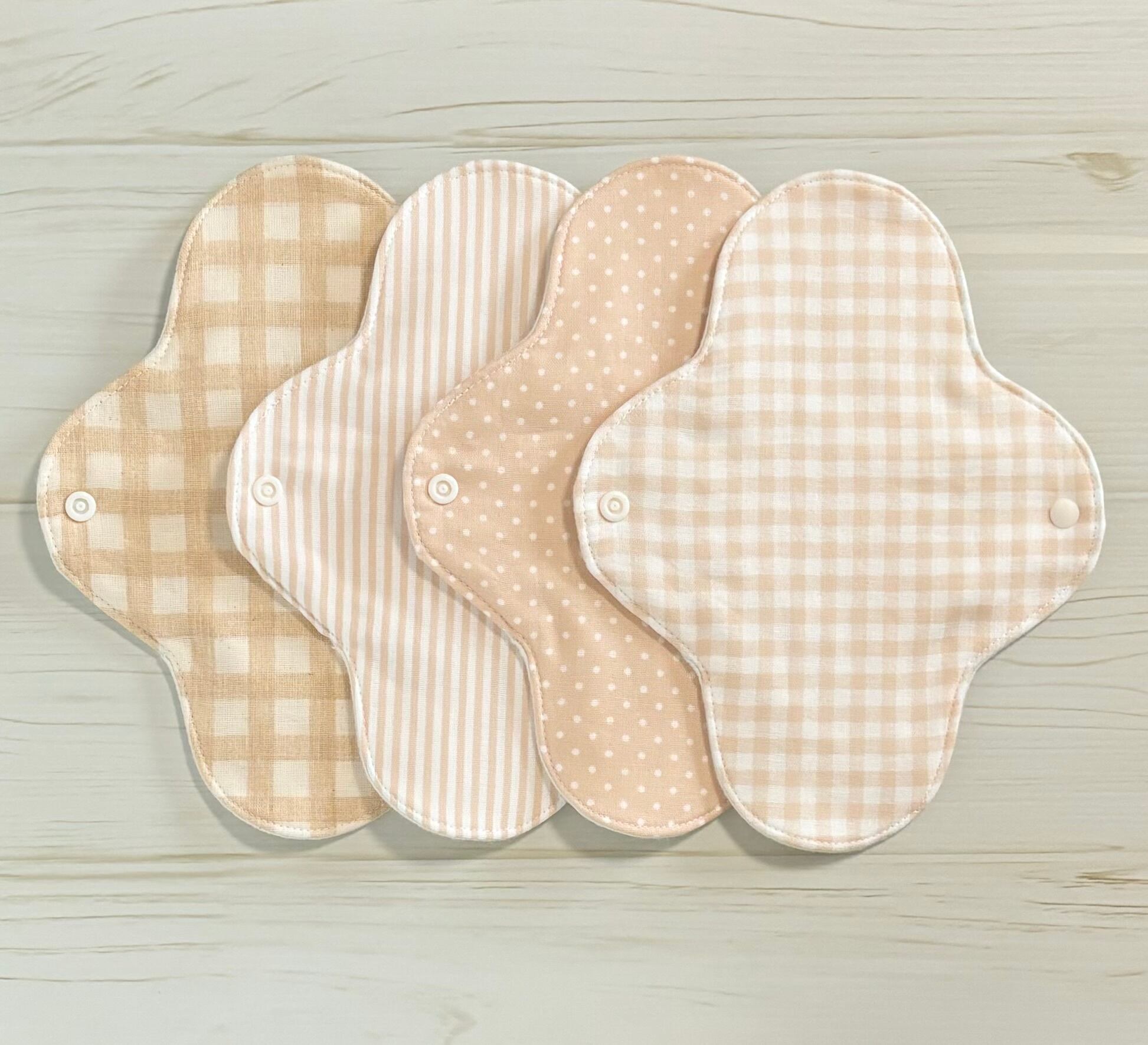 お肌に優しく、安心安全な無添加・無漂白の生地を使用した布ナプキン4枚セットとなります❁