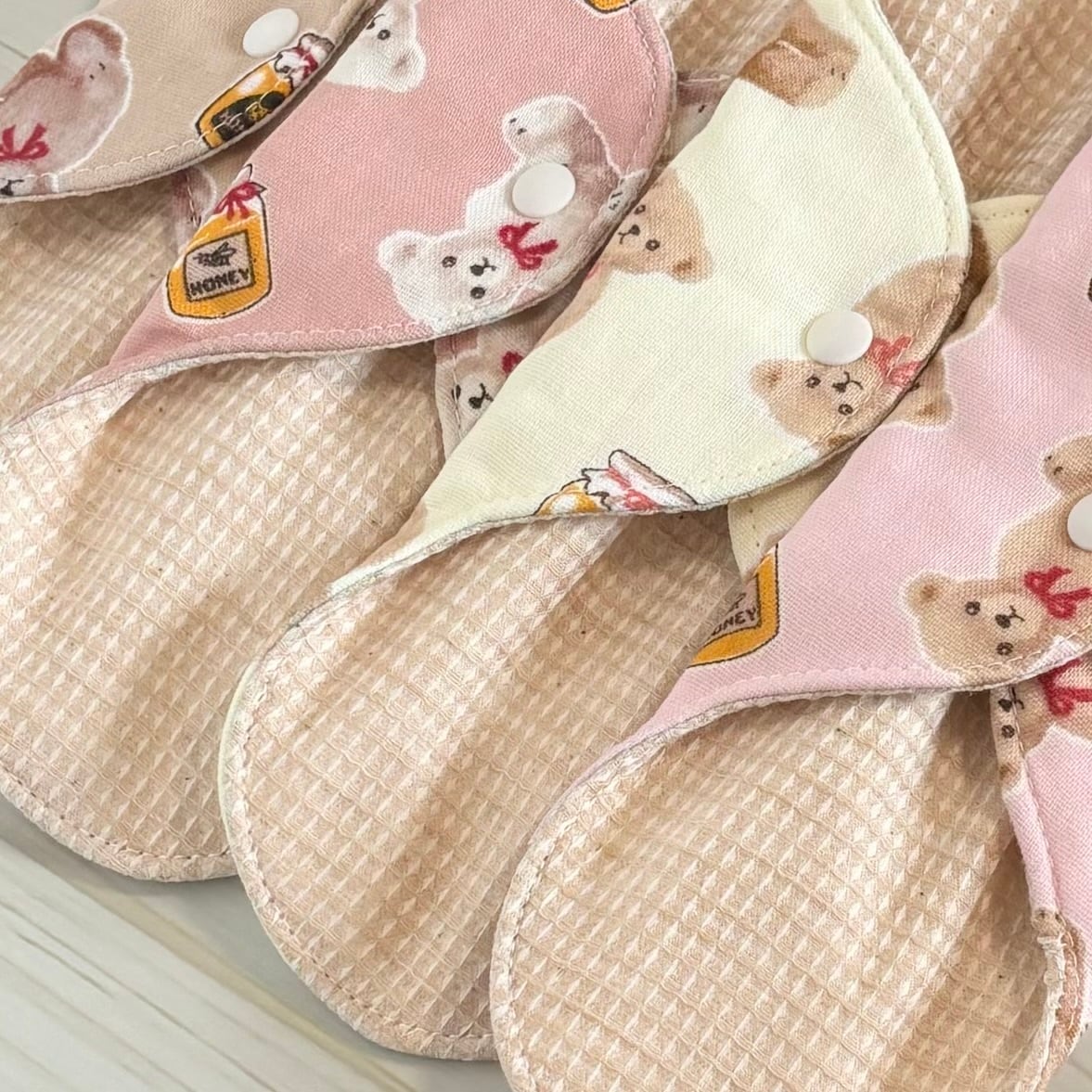 お肌に優しく、安心安全なオーガニック生地を使用した布ナプキン4枚セットとなります❁