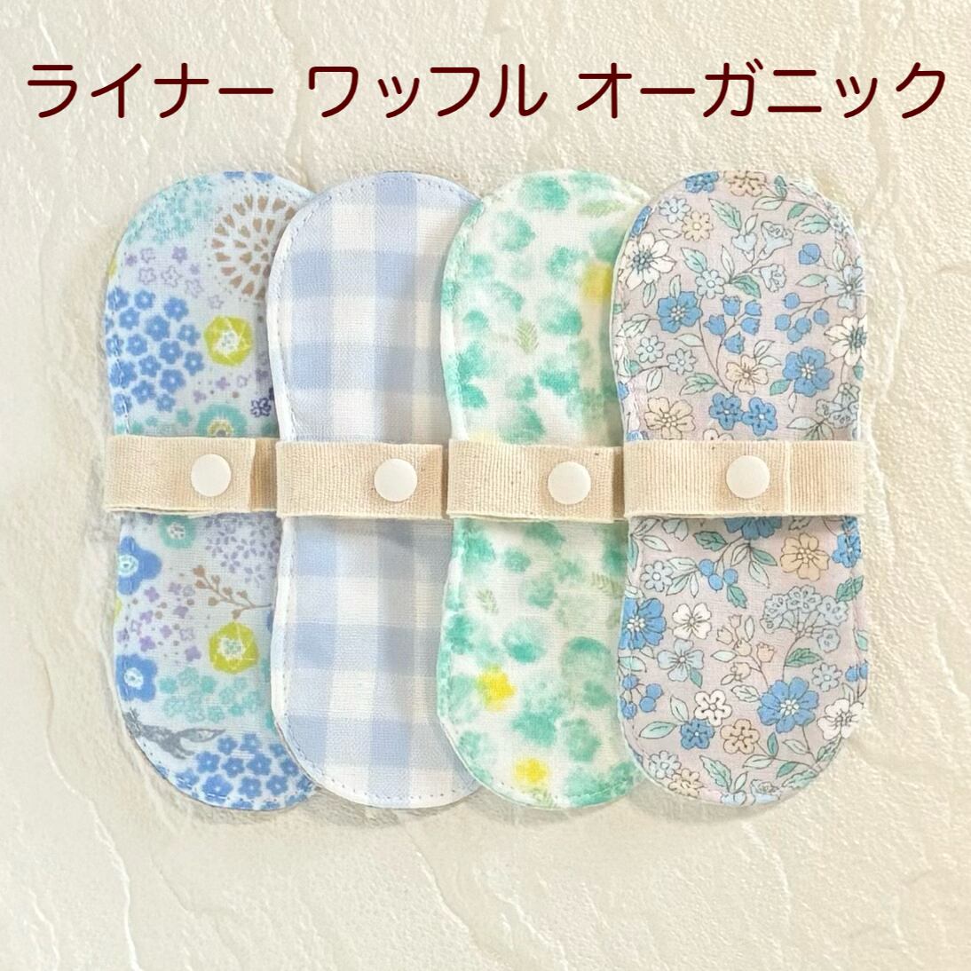 お肌に優しく、安心安全なオーガニックワッフル生地を使用した布ライナー4枚セットとなります❁