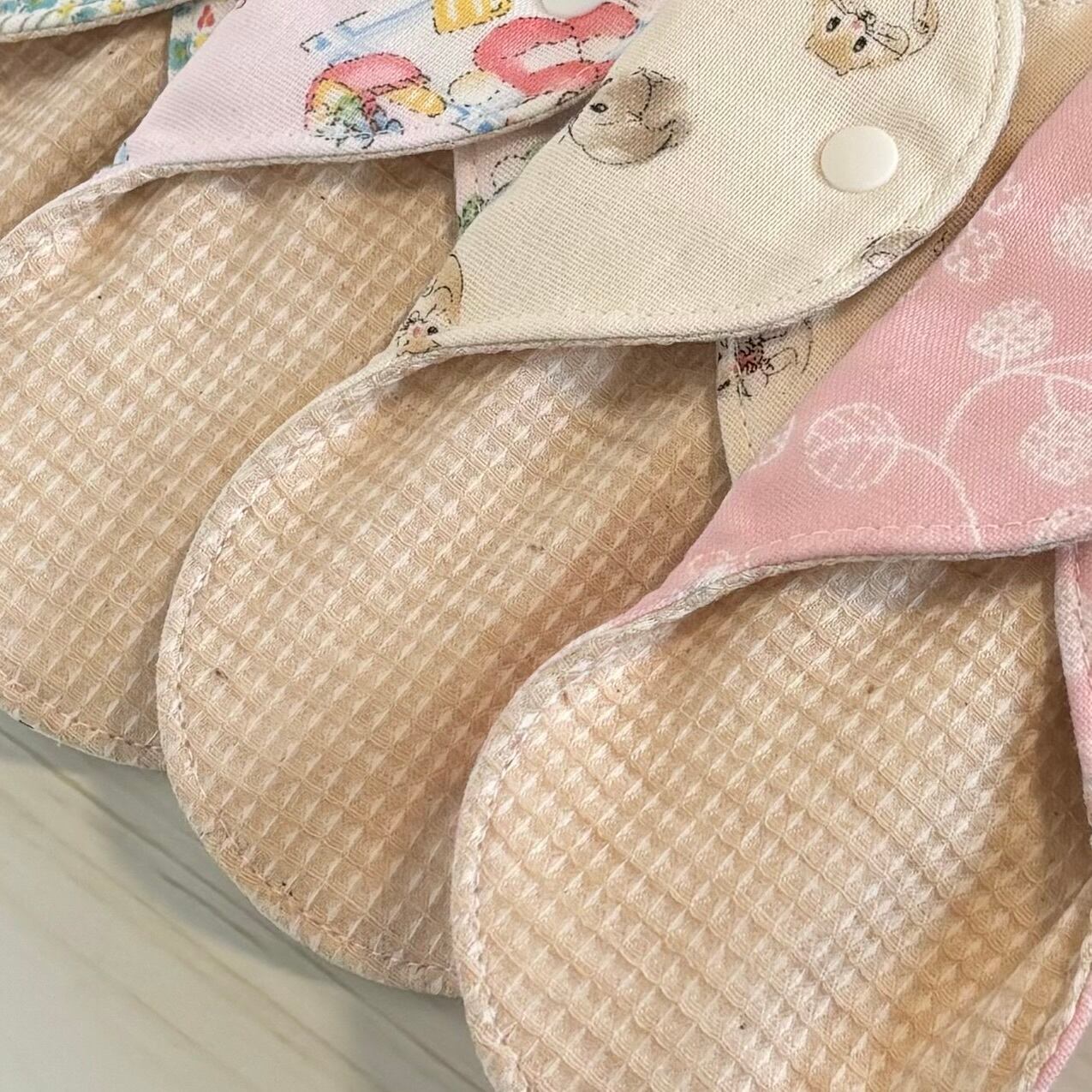 裏布には全てダブルガーゼ生地を使用し、あたたかみのある布ナプキンに仕上げました。