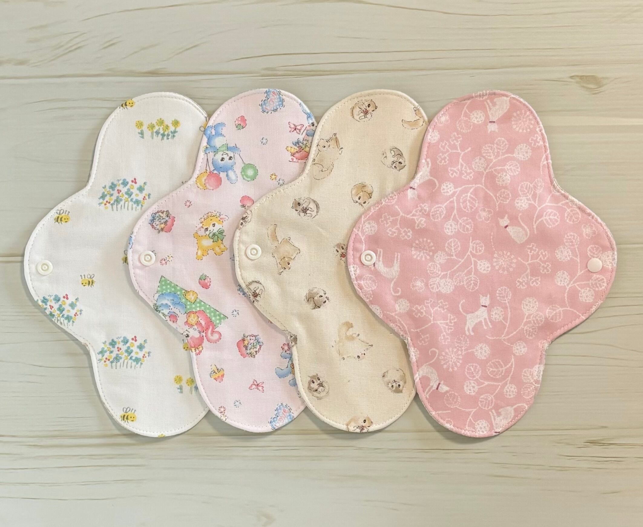 お肌に優しく、安心安全なオーガニック生地を使用した布ナプキン4枚セットとなります❁