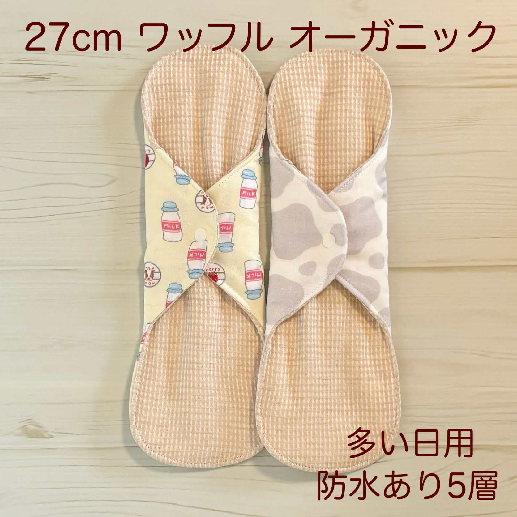 お肌に優しく、安心安全なオーガニック生地を使用した布ナプキン2枚セットとなります❁