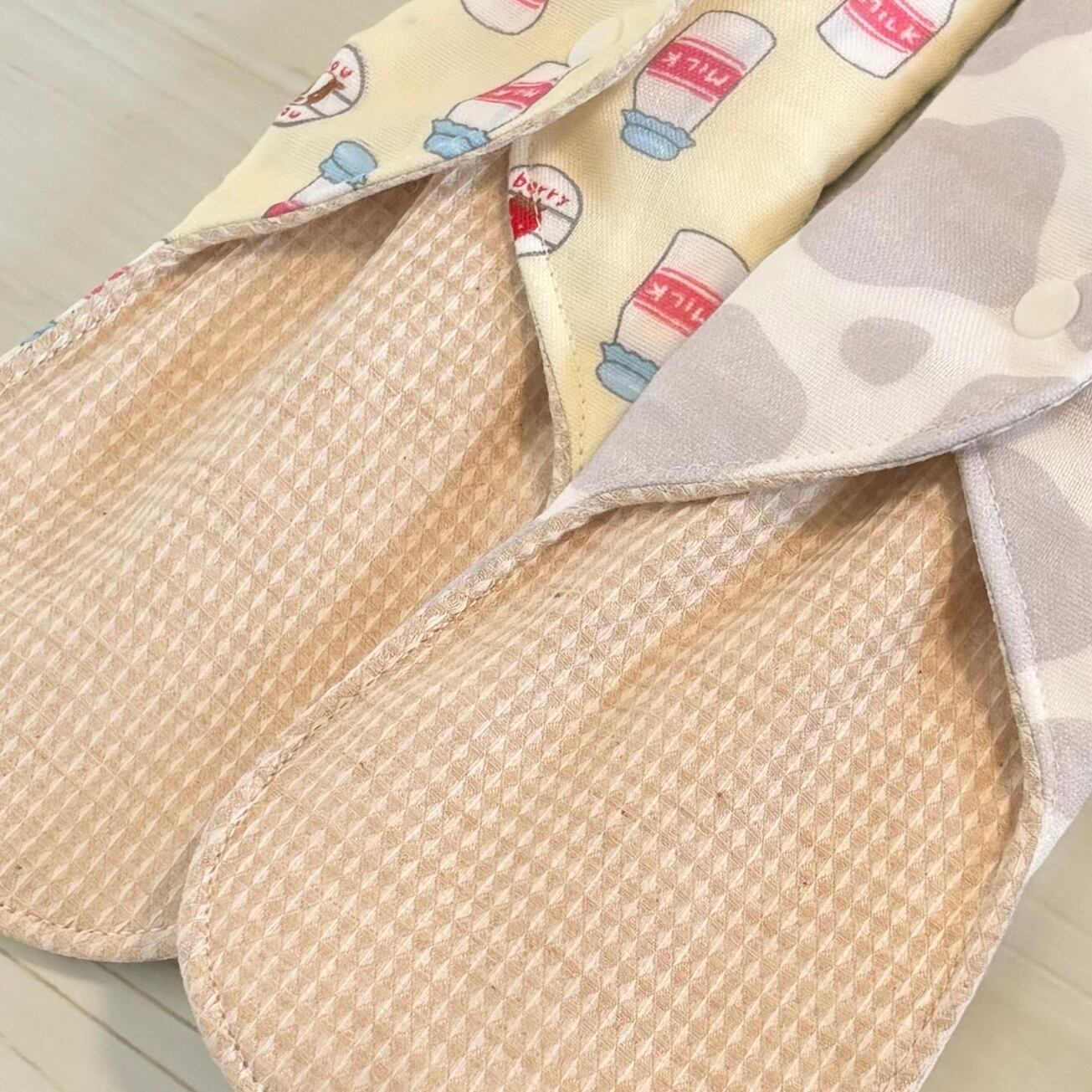裏布には全てダブルガーゼ生地を使用し、あたたかみのある布ナプキンに仕上げました。