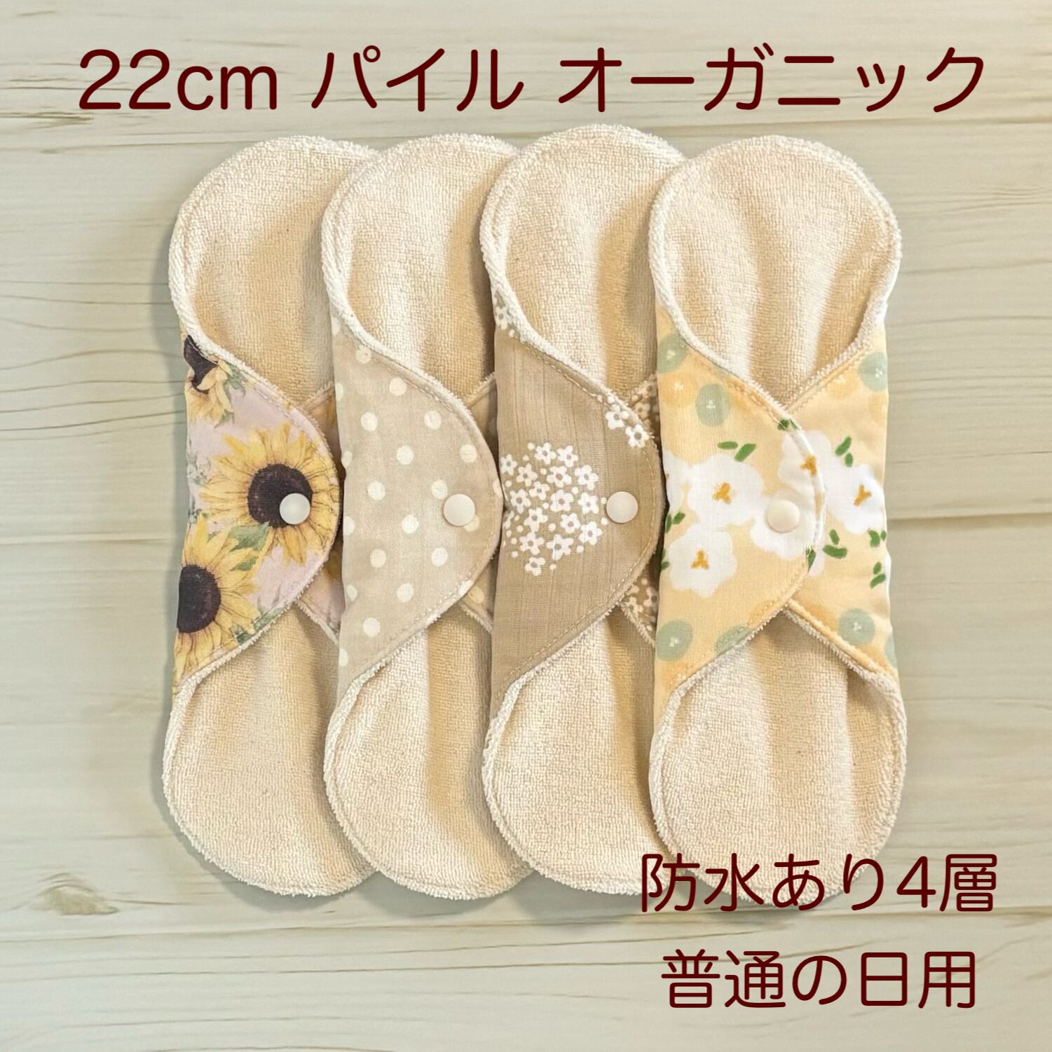 • 22cm パイル オーガニック 布ナプキン 防水仕様 4枚セット 普通の日用 269