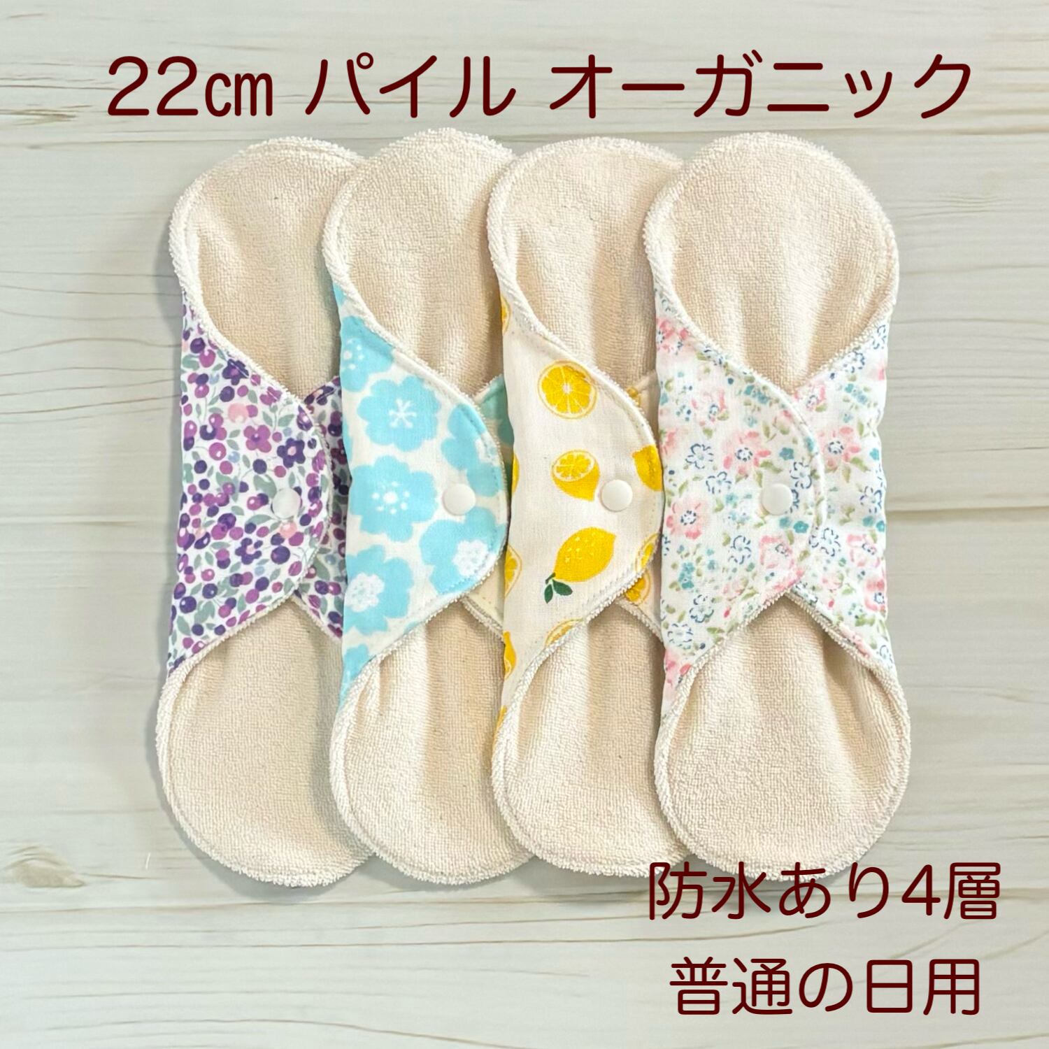 22cm パイル オーガニック 布ナプキン 防水仕様 4枚セット 普通の日用 319