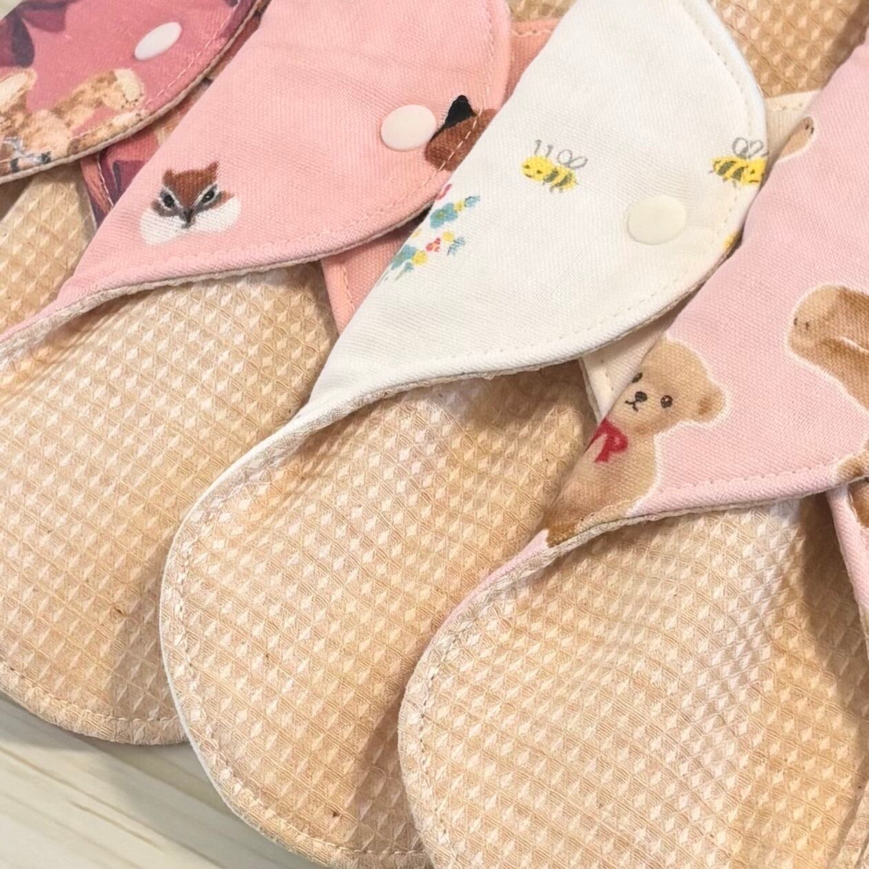 裏布には全てダブルガーゼ生地を使用し、あたたかみのある布ナプキンに仕上げました。