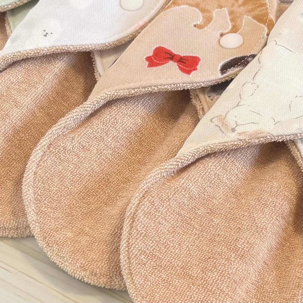 裏布には全てダブルガーゼ生地を使用し、あたたかみのある布ナプキンに仕上げました。
