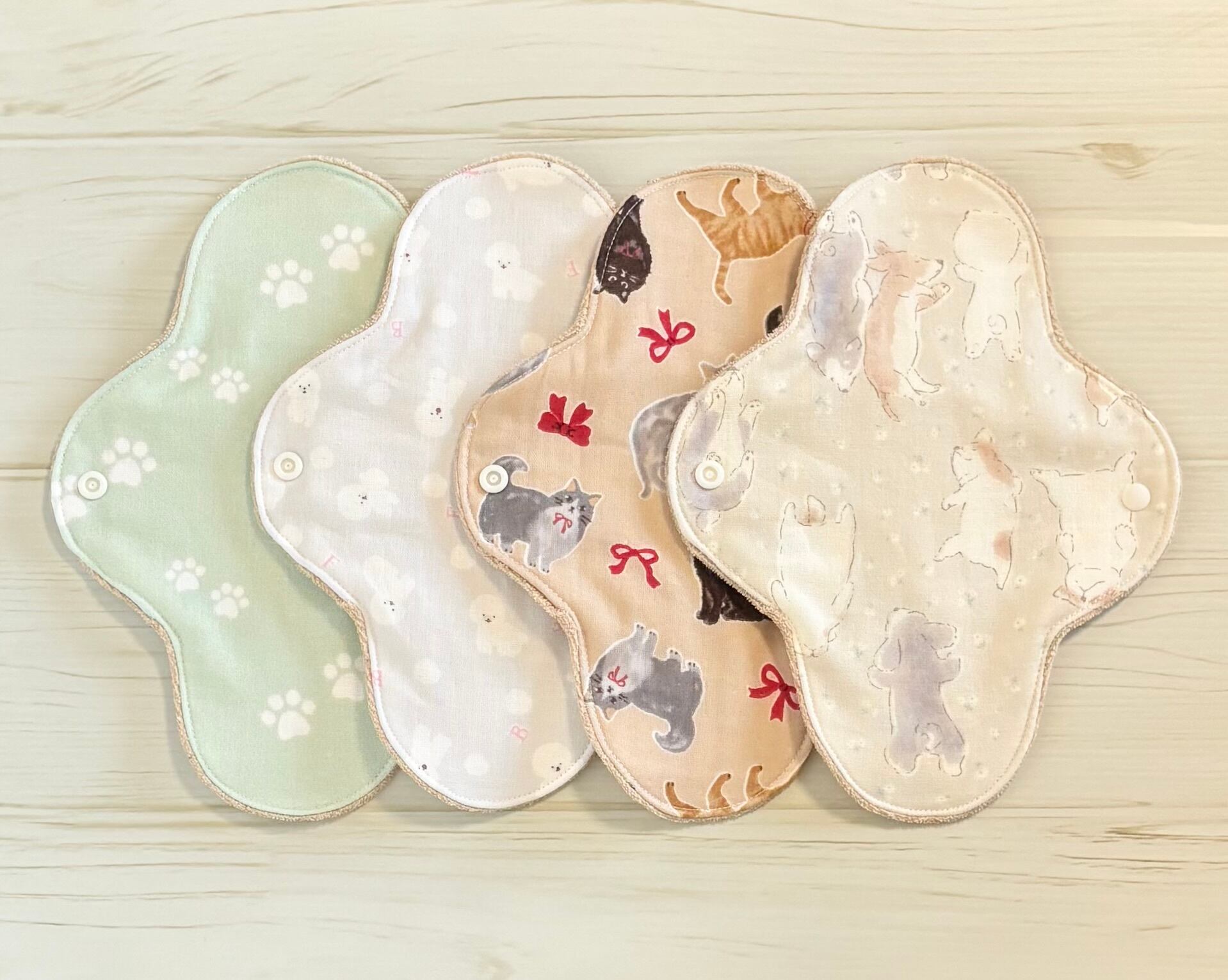 お肌に優しく、安心安全なオーガニック生地を使用した布ナプキン4枚セットとなります❁