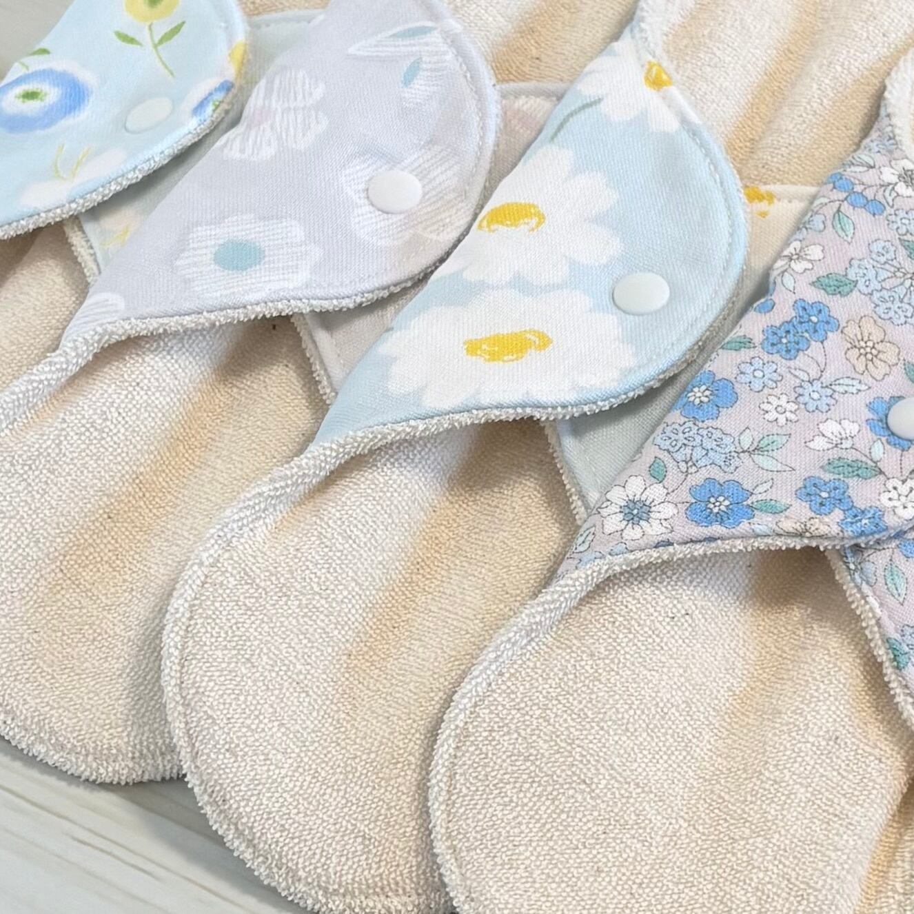 お肌に優しく、安心安全なオーガニック生地を使用した布ナプキン4枚セットとなります❁