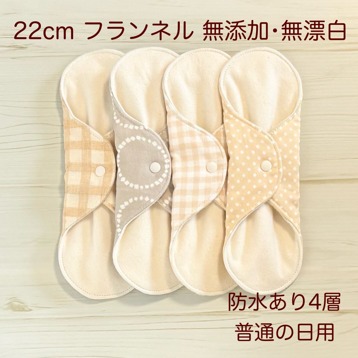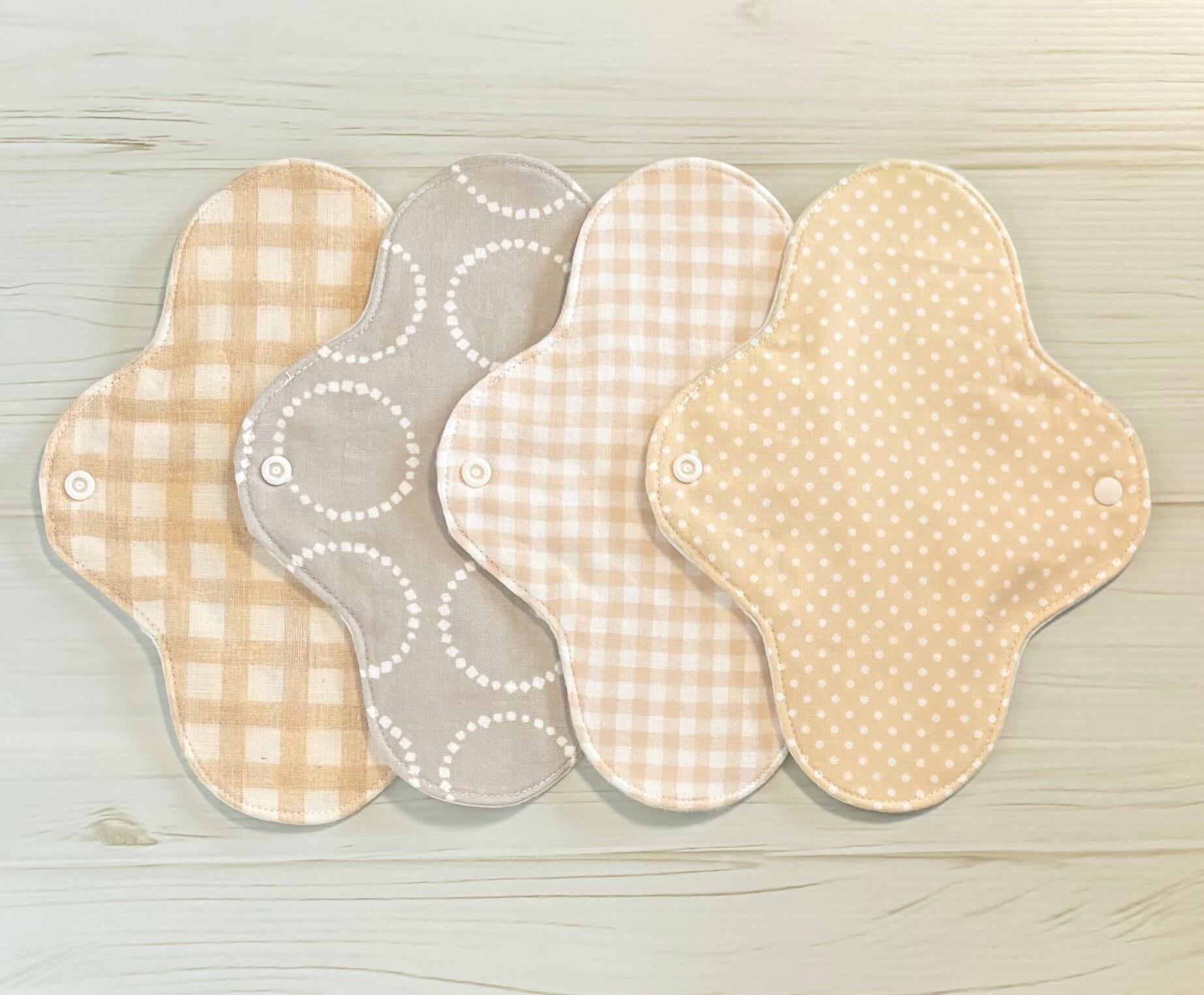 お肌に優しく、安心安全な無添加・無漂白の生地を使用した布ナプキン4枚セットとなります❁