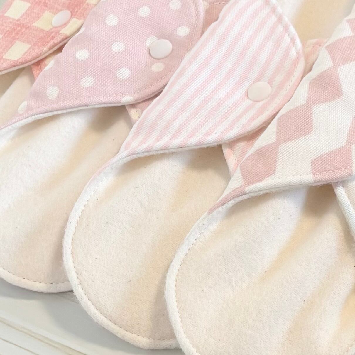 お肌に優しく、安心安全な無添加・無漂白の生地を使用した布ナプキン4枚セットとなります❁